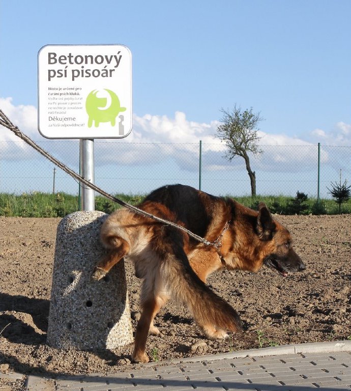 Собачі пісуари винайшли десять років тому двоє власників собак із Брно — Франтішек Томечек та Шарка Фіалова. Винахід запатентували, й тепер такі встановлюють у Празі, Варшаві, Будапешта та Калгарі, повідомляє Чеське радіо.