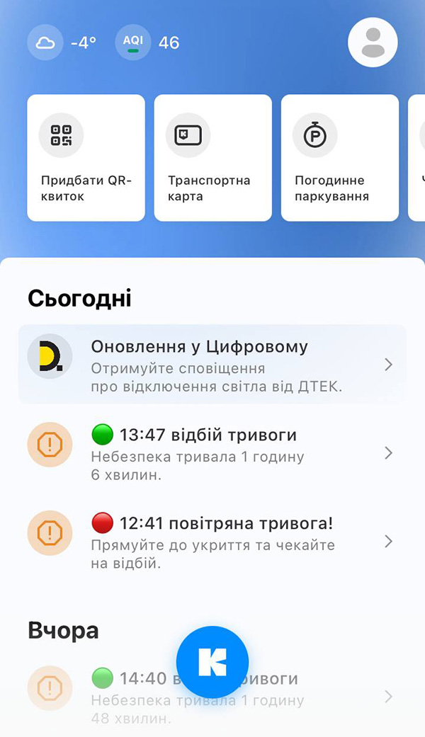 Щоб скористатися сервісом, потрібно додати адресу та увімкнути сповіщення в налаштуваннях застосунку. Можна також налаштувати оповістки: отримувати їх цілодобово або увімкнути режим «не турбувати вночі».