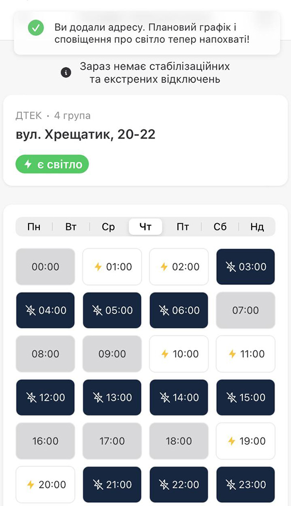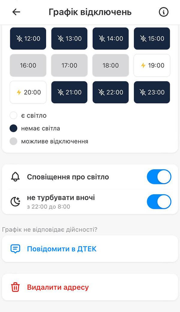 У застосунку можна буде переглянути, до якої з шести груп належить ваша адреса, й отримувати спеціальне сповіщення, якщо за вашим місцеперебуванням плануватимуть відключення.