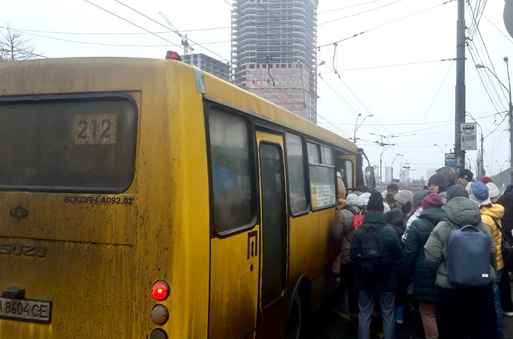 Зупинка громадського транспорту під час повітряної тривоги також ускладнює ситуацію: хоч інтервал автобусів та тролейбусів тепер складає лише 1 хв, під час повітряної тривоги вони повністю зупиняються. Тоді серед громадського транспорту залишаються лише маршрутки, які беруть на себе весь пасажиропотік. «Пасажири Києва» розповідають, що під час тривоги маршрутки переповнені, а на зупинках утворюються черги.