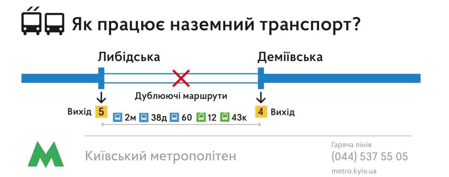 Сьогодні, 13 грудня, запрацював «човниковий» рух поїздів між станціями метро «Теремки» та «Деміївська». Кожною із двох колій курсують поїзди з інтервалом 13-17 хвилин. З Теремків до Либідської площі ходять автобуси, для них облаштували виділену смугу.