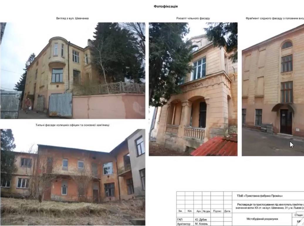Віллу на вулиці Шевченка 31 у Львові реставрують із пристосуванням під готель. Відповідні МУО презентували на засіданні виконавчого комітету Львівської міськради сьогодні, 15 грудня, повідомляє zaxid.net.