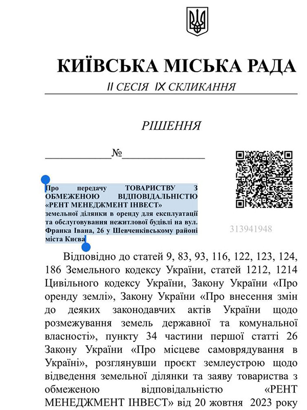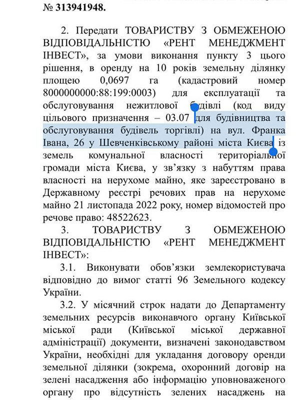 20 грудня на земельній комісії Київради розглядатимуть рішення щодо передачі компанії «Рент Менеджмент Інвест» земельної ділянки під цим будинком для будівництва та обслуговування будівель торгівлі