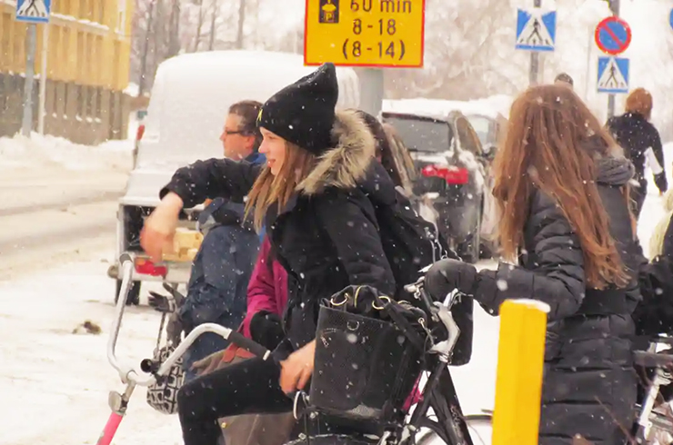 Наприклад, у фінському місті Оулу, що знаходиться значно північніше Києва, на велосипедах катаються протягом всього року, а біля шкіл можна побачити припаркований двоколісний транспорт навіть у січні, пише The Guardian. У фінському місті Йоенсуу 50% мешканців продовжують їздити велосипедом і взимку – така ж ситуація у більшості міст Фінляндії та сусідньої Швеції. Серед урбаністів навіть стала популярною концепція, яка відстежує популярні велосипедні маршрути за допомогою слідів від коліс на снігу.