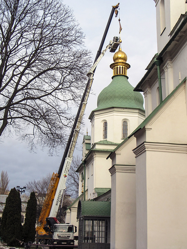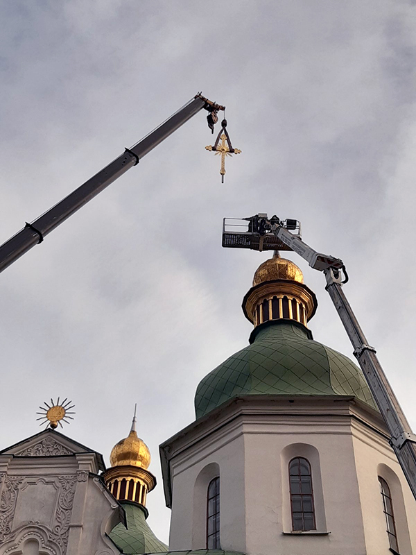 На Софійському соборі почали встановлення відреставрованих хрестів. Скоро демонтують ще один