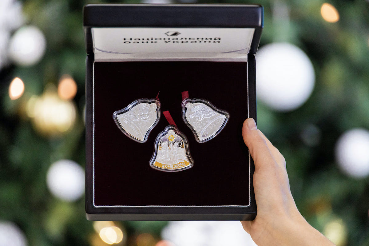 Національний банк випустив набір пам’ятних монет «Щедрик — колядка дзвонів». Три срібні монети номіналом 10 гривень присвячено твору композитора Миколи Леонтовича.