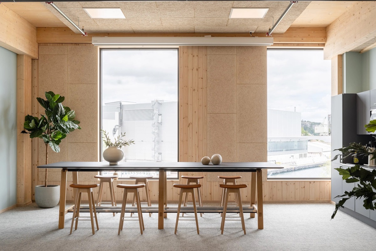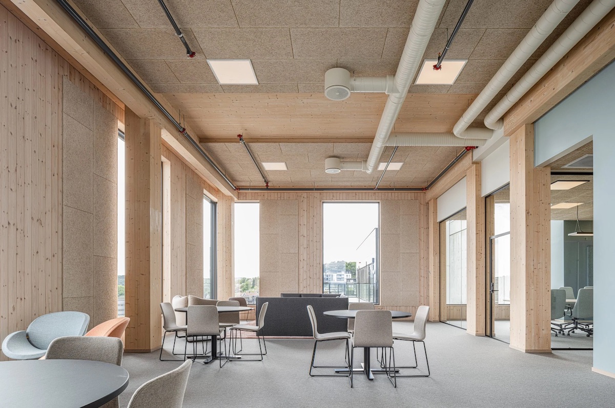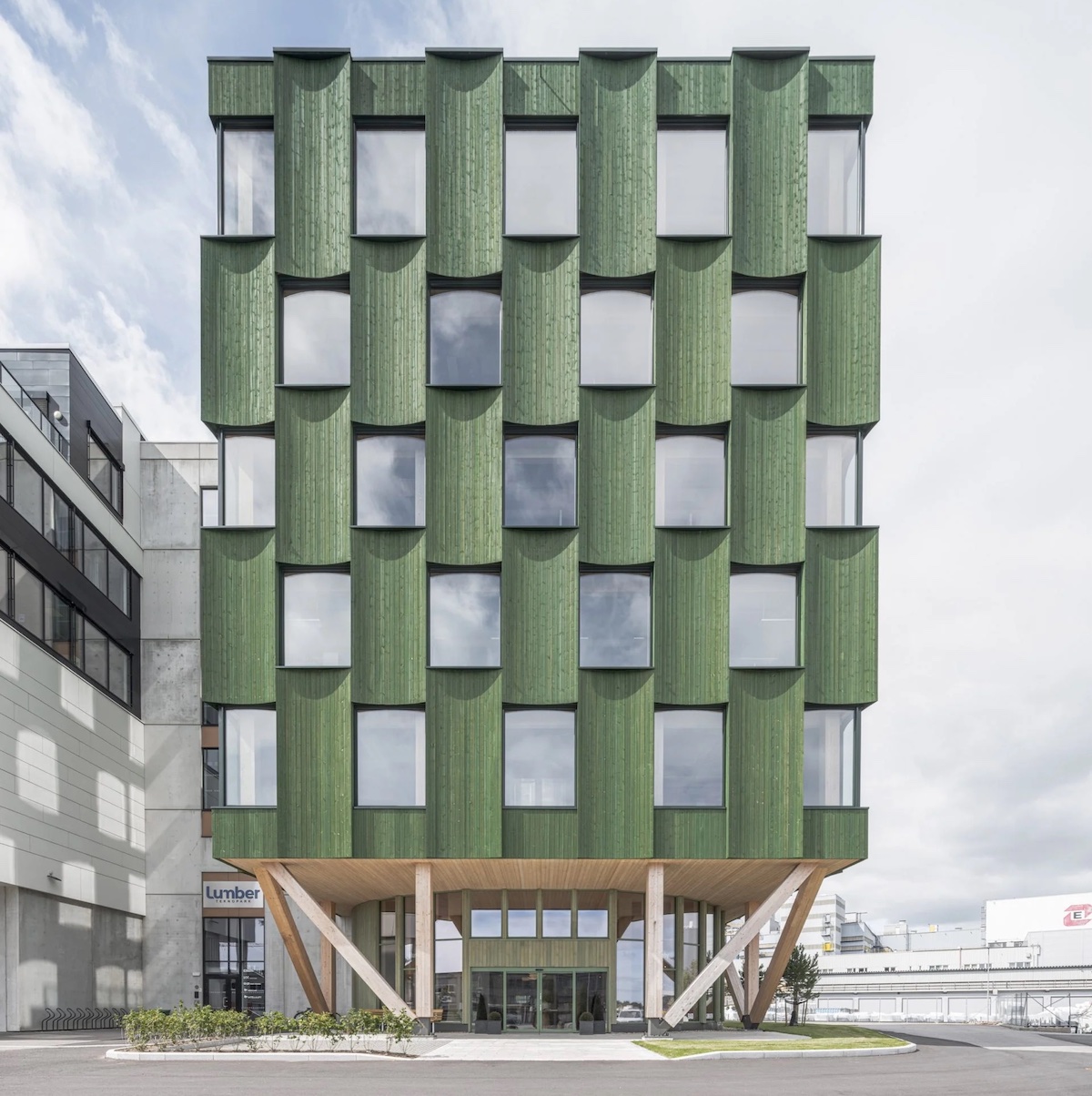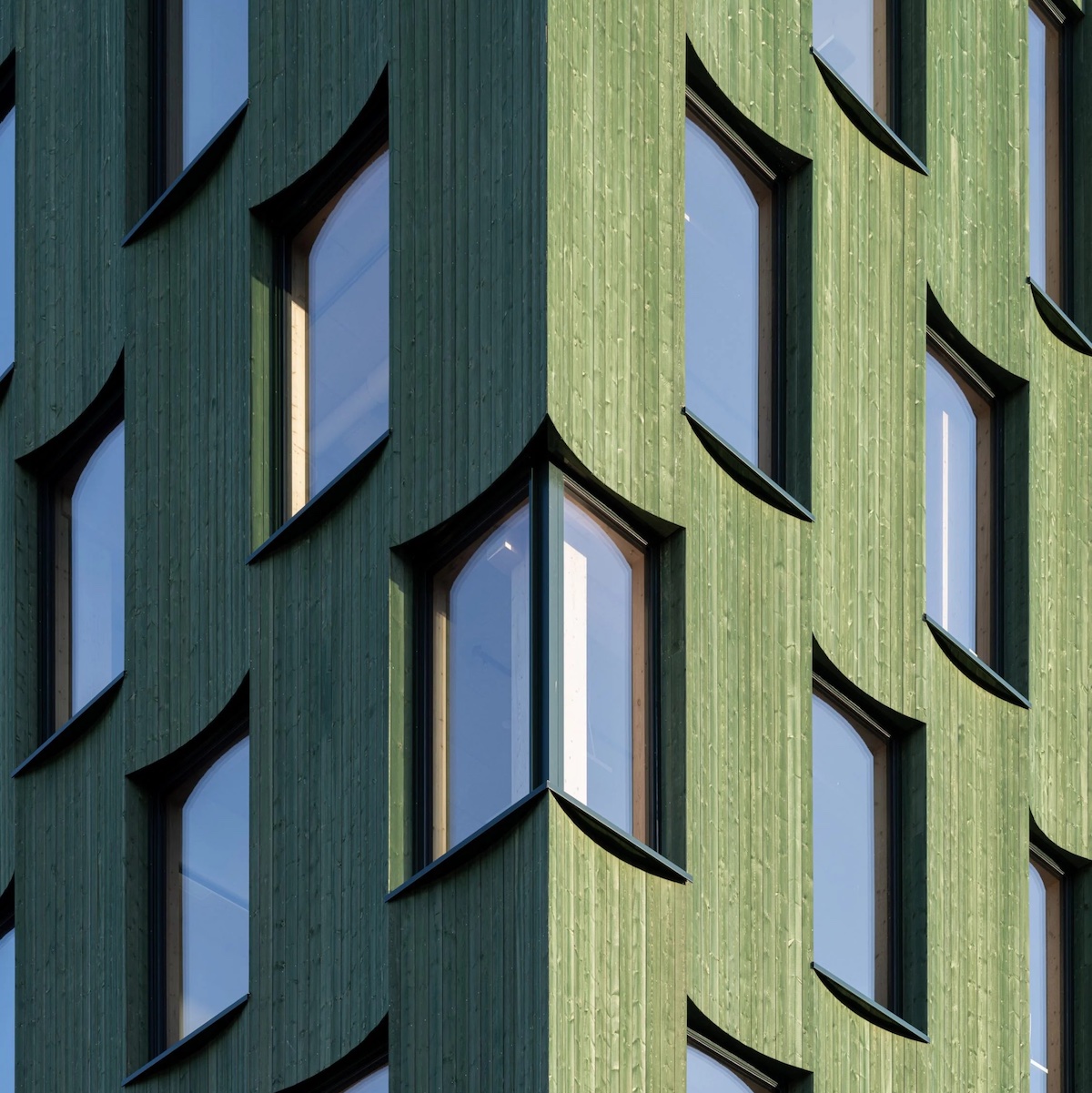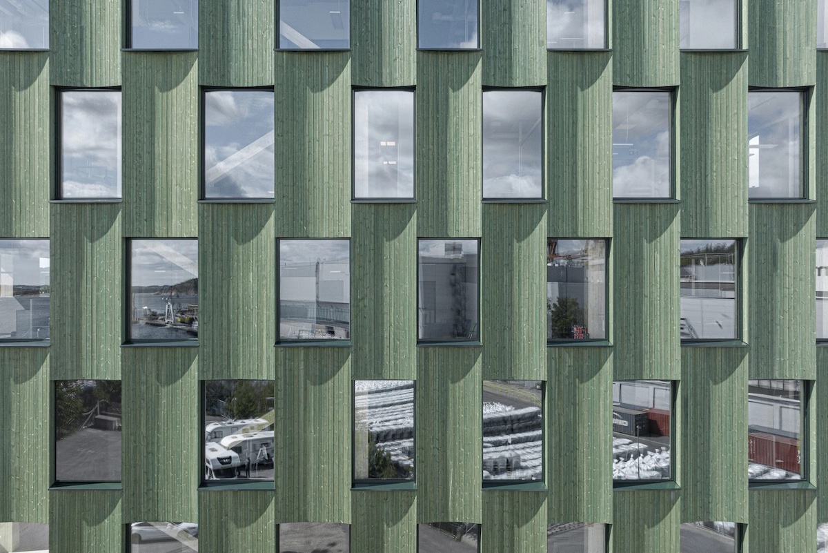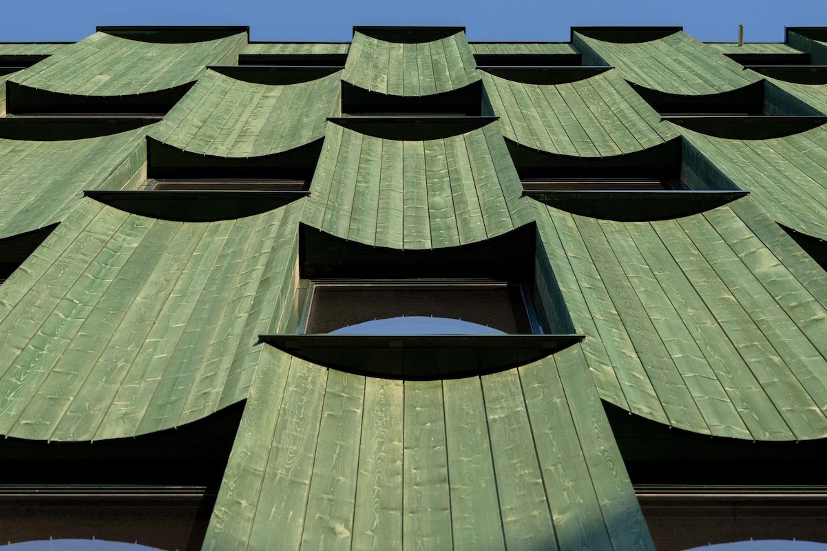 Дерев’яний офісний будинок у Норвегії прикрасили вигнутими зеленими панелями (фото)