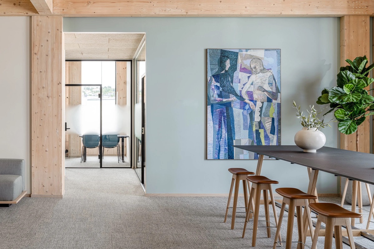 Третій і четвертий поверхи об’єднані дворівневим атріумом. Високі стелі та великі вікна утворюють світлі робочі простори, розділені перегородками з дерева та скла.