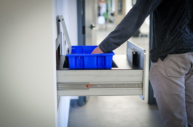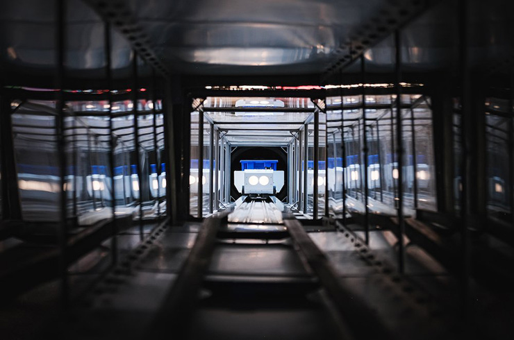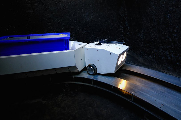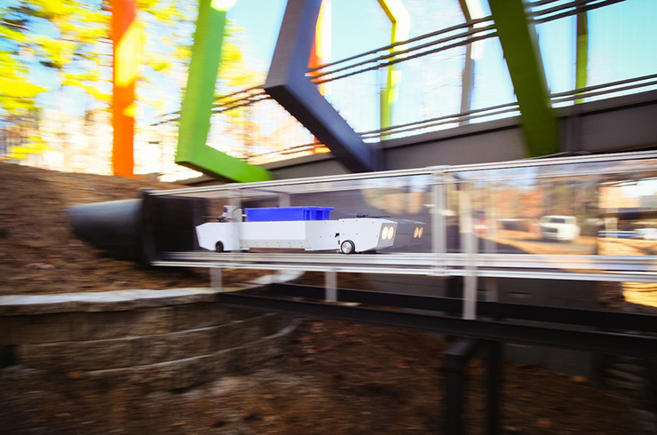 Ґеррет МакКарек порівняв підземну доставку з Нью-Йоркським метро – от тільки вагонетка перевозить не людей, а посилки. Роботи-доставники рухають тунелем від ТЦ до офісу та назад, перевозячи їжу, посилки, продукти чи домашні товари. На обох кінцях тунелю знаходяться шухляди, відкривши які, можна покласти або забрати замовлення.