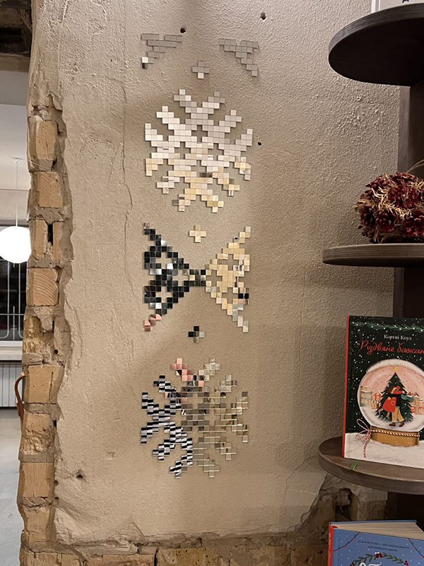 Простір поступово наповнюється власною атмосферою: тут зʼявились вишиті картини, мозаїка-вишиванка, графіка від української мисткині Надії Харт та багато інших речей, які слугують не лише окрасою, а й розповідають певну історію.