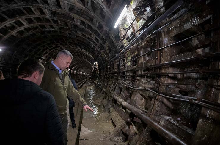 Віталій Кличко та Віктор Брагінський оглядають тунель 8 грудня. Фото: КМДА