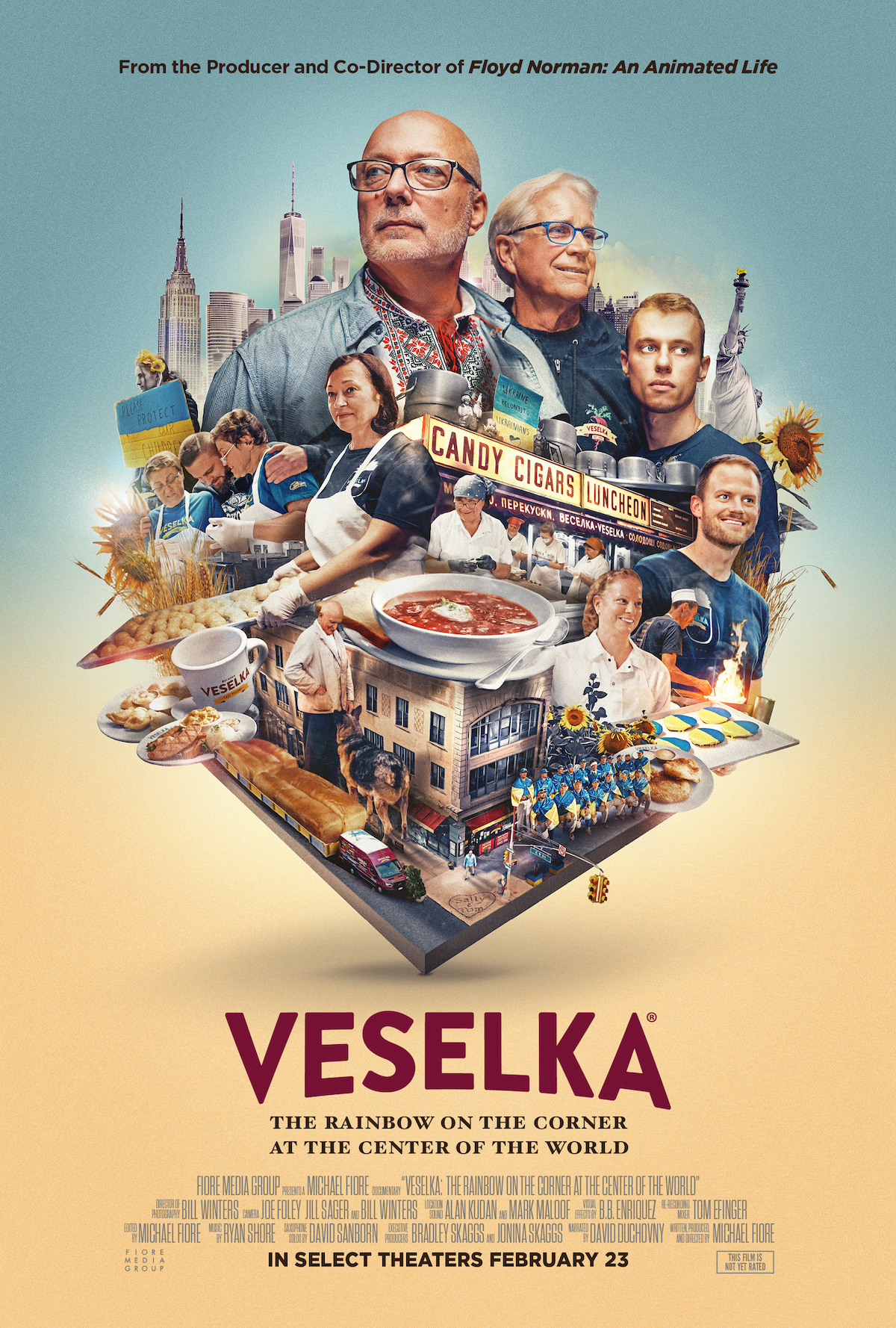 «”Веселка” — це історія любові до родини та громади, об’єднаних їжею та культурою. Коли ми формували творчу команду, було дуже важливо залучити людей, які люблять і знають “Веселку” та культуру нью-йоркської Маленької України, — розповідає режисер Майкл Фіоре. — Девід Духовни виріс за два квартали від “Веселки” і десятиліттями був свідком еволюції як закладу, так і району».