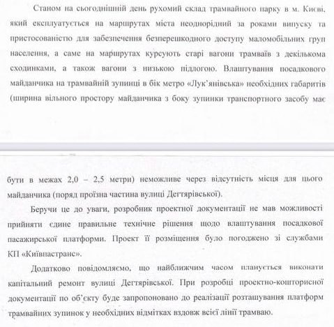 Натомість обіцяють розглянути можливість облаштування облаштування платформ на всій лінії трамваю, коли буде капітальний ремонт («найближчим часом»).