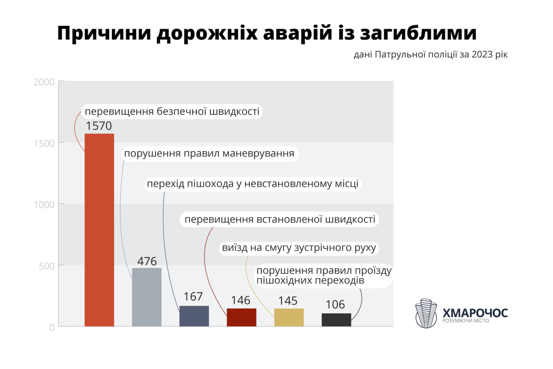 Перевищення безпечної швидкості є причиною загибелі людей у понад 50% випадків дорожніх аварій. Про це свідчить статистика аварій на дорогах України за 2023 рік, опублікована Патрульною поліцією.