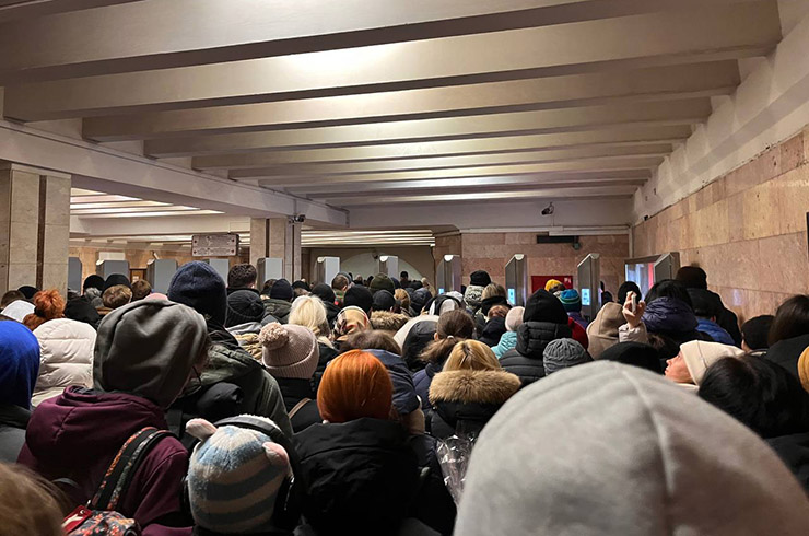 Натовп на станції метро «Либідська». Фото: Пасажири Києва