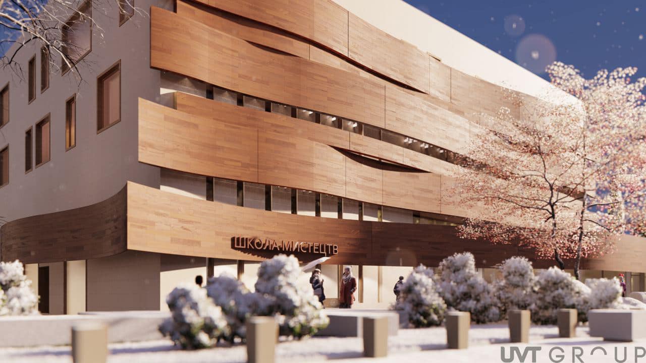 Архітектурне бюро UVT GROUP презентувало проєкт відбудови школи мистецтв у Бородянці на Київщині, повідомляє Pragmatika.