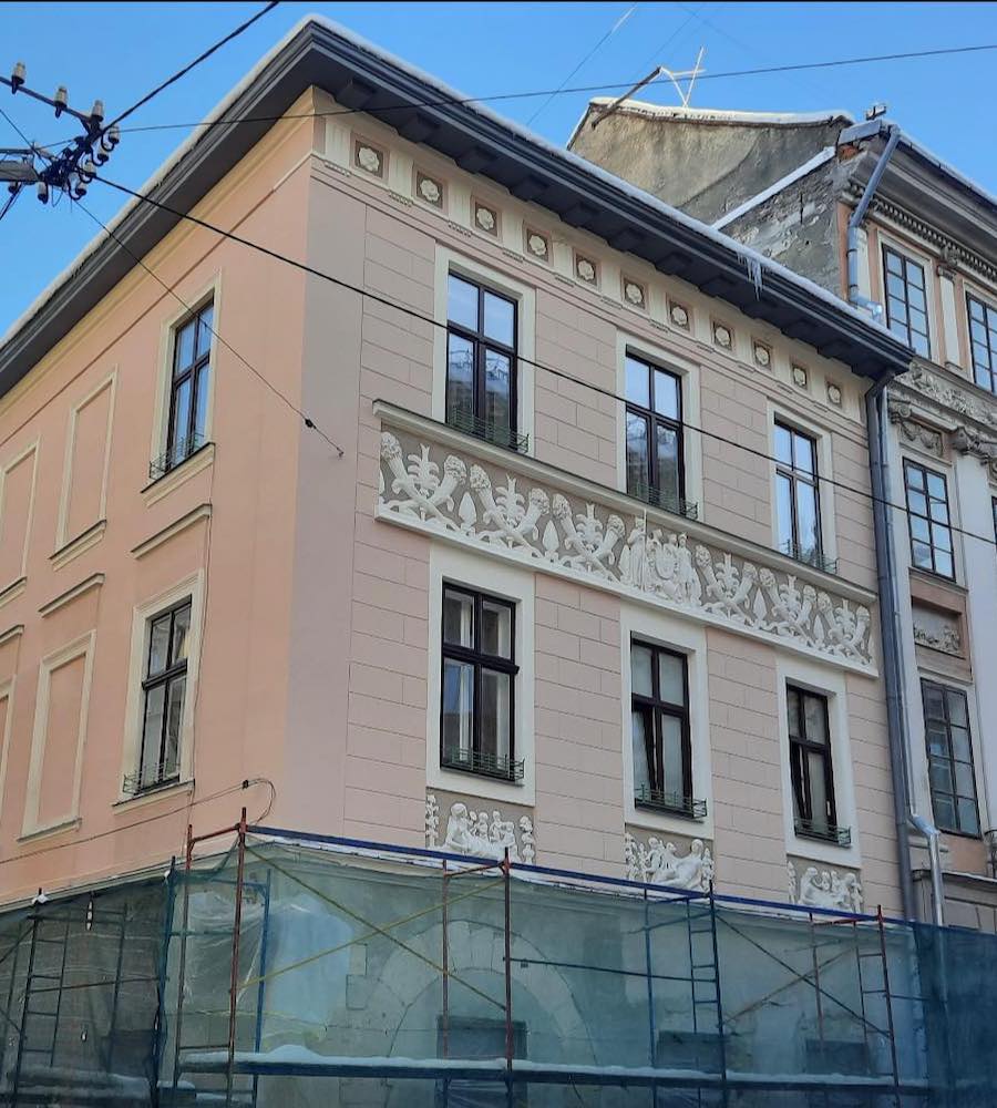 Реставрувати фасади будинку почали в 2020 році. Тоді провели тендер на 1,1 мільйона гривень. Торік відновили другий-третій поверхи, а цього року мають закінчити перший.