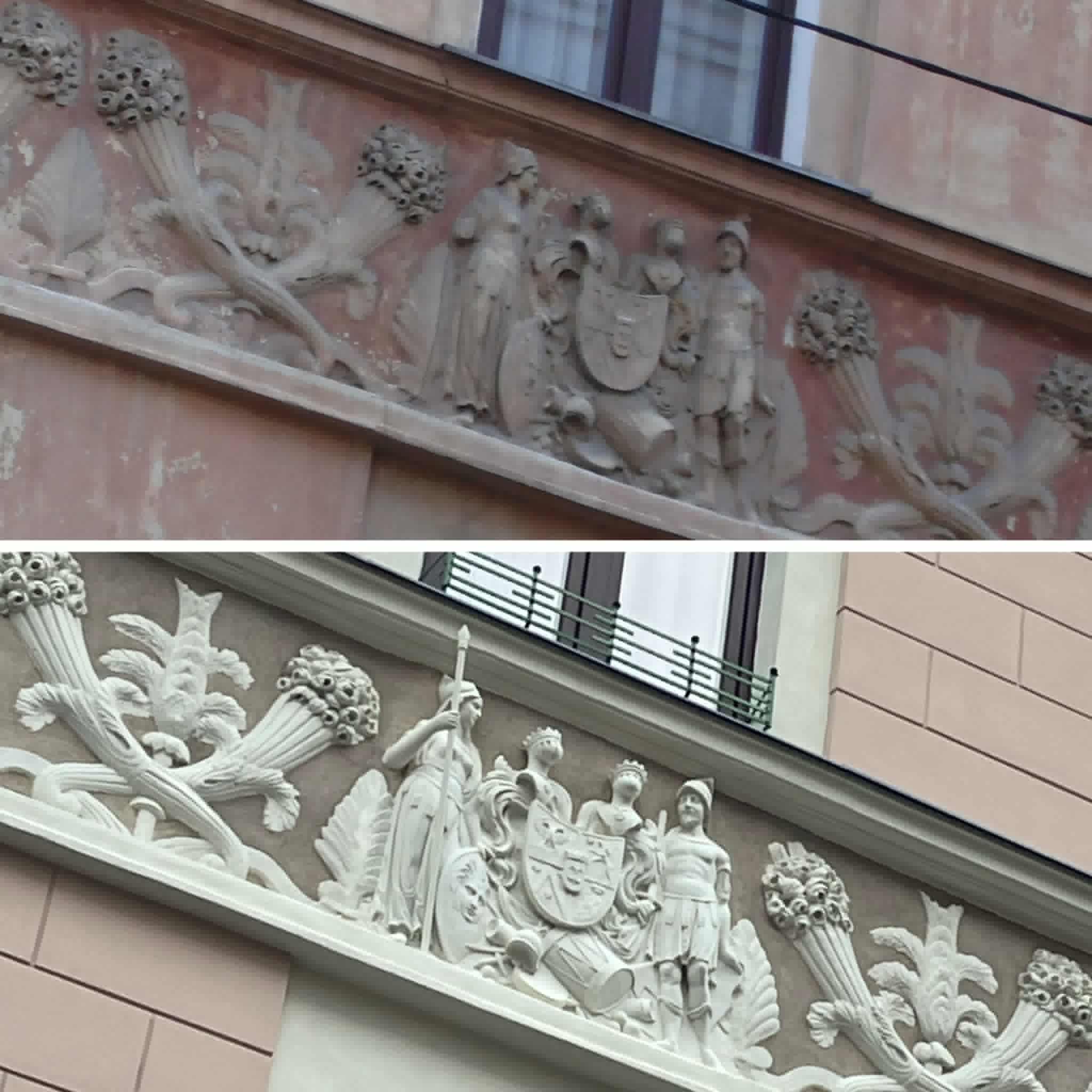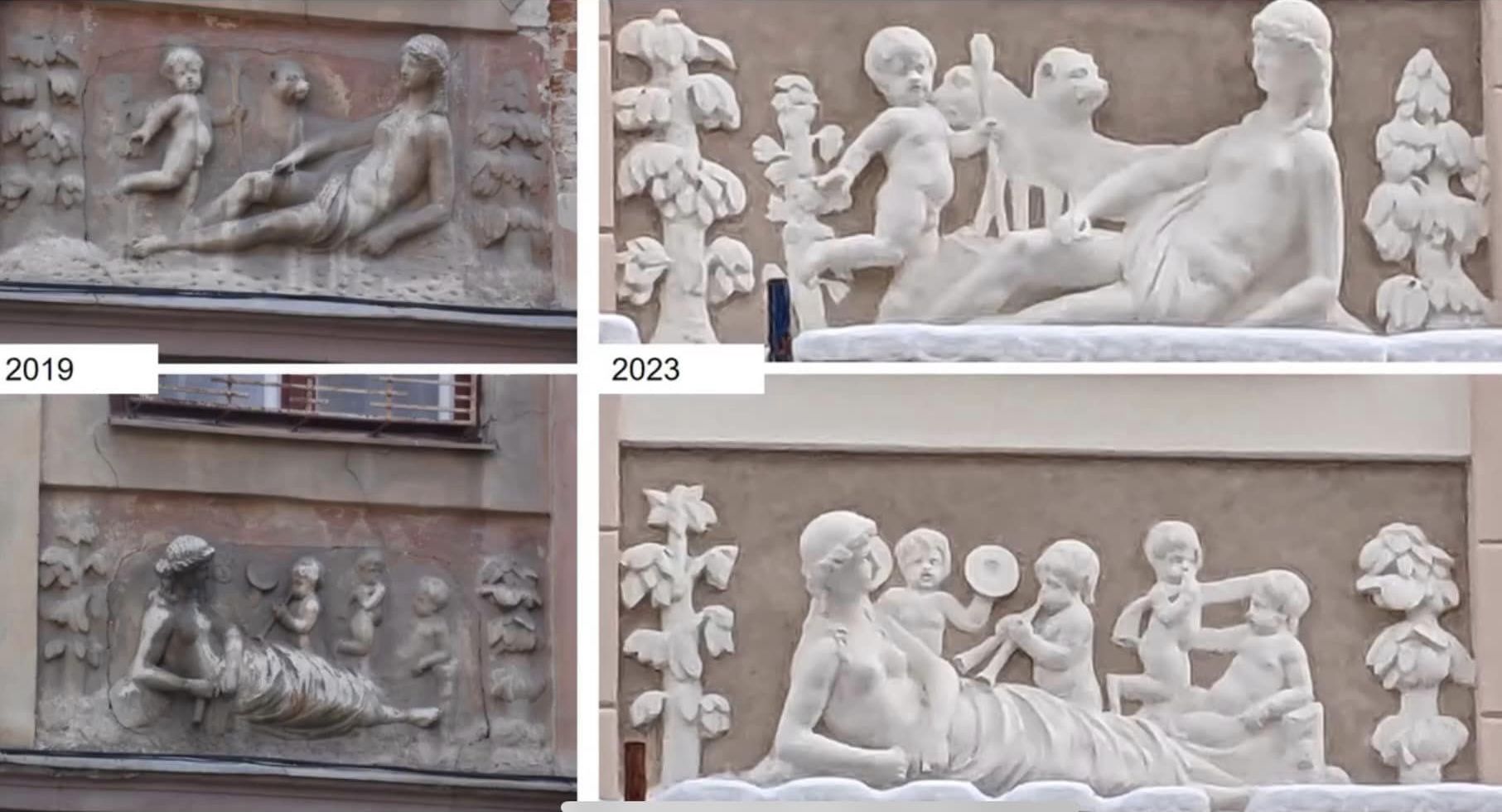 У центрі Львова відреставрували рельєфи на кам’яниці XVII століття. Фото до і після