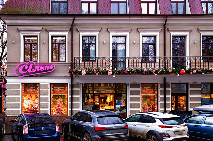 Мережа «Сільпо» до Дня святого Валентина прикрасила фасади і вітрини двох своїх супермаркетів – в Дніпрі та Одесі.