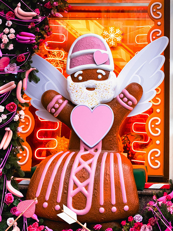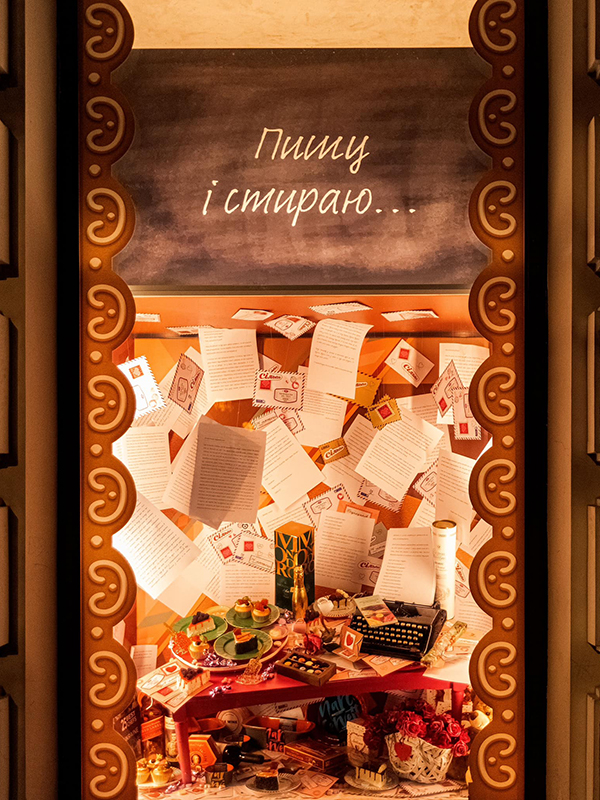 В Одесі пряникові чоловічки стали чарівними купідонами. Соломʼяний козлик надсилає поцілуночки всім перехожим, а ікебана у формі букви «С» символізує вир почуттів, що не має чіткої форми чи зображення. У одній з вітрин можна побачити стіл поета, за яким коїться справжній творчий безлад – митець пише вірші, присвячені коханню, проте намагаючись дійти до ідеалу, потрапляє у замкнуте коло творчості. На щастя, у нього є шоколад та тортики для натхнення.