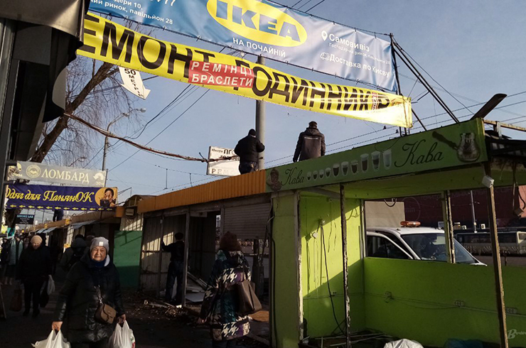 Демонтажні бригади «Київблагоустрою» виконують розпорядження Ради оборони Києва щодо вивільнення підходів до станцій метро, які слугують укриттям під час повітряних тривог. МАФи довгий час загороджували прохід до метро та ускладнювали навігацію ділянкою, а також створювали перешкоду для руху пасажирам, що пересідали з наземного на підземний транспорт. Перед знесенням всім господарям яток роздали приписи з попередженням та пропозицію самостійно прибирати павільйон.