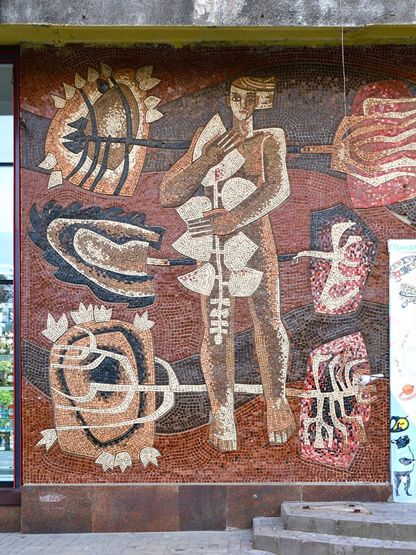 11 мозаїчних панно на бульварі Лесі Українки створили у 1969-1970 роках Анатолій Гайдамака і Лариса Міщенко за участі Олександра Міловзорова. Вже довгі роки мозаїки потерпають від свавілля власників магазинів і ресторанів. Кілька років тому ресторан «Марокана» закрив ціле панно під літню терасу, а вивіски магазинів Nike та Watsons закривають верхівки мозаїк.