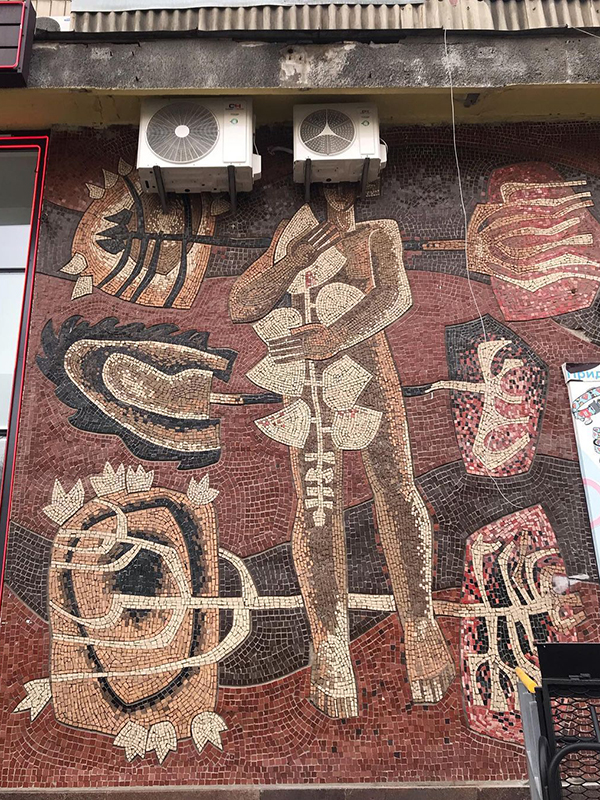 У будинку №28 раніше був зоомагазин, проте скоро там планують відкрити якийсь заклад - орендарі вже встановили кондиціонери прямо на мозаїці.