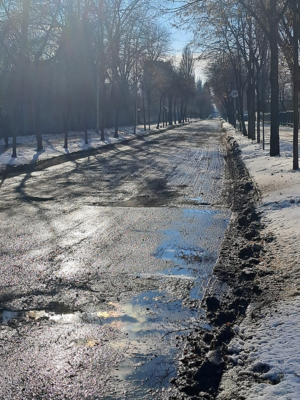 12 лютого ШЕУ Соломʼянського району провели на вулиці ремонтні роботи, проте 13 лютого майже нічого не змінилось – лише невелику ділянку порівняли грейдером. «Рівень води у Новопольовому водосховищі – 30-40 сантиметрів», – жартують мешканці району. Соломʼянці вимагають у «Київпастранс» повернути автобусні маршрути №2 та №25 на вулицю Новопольову та закликають киян надсилати відповідні звернення на 1551.