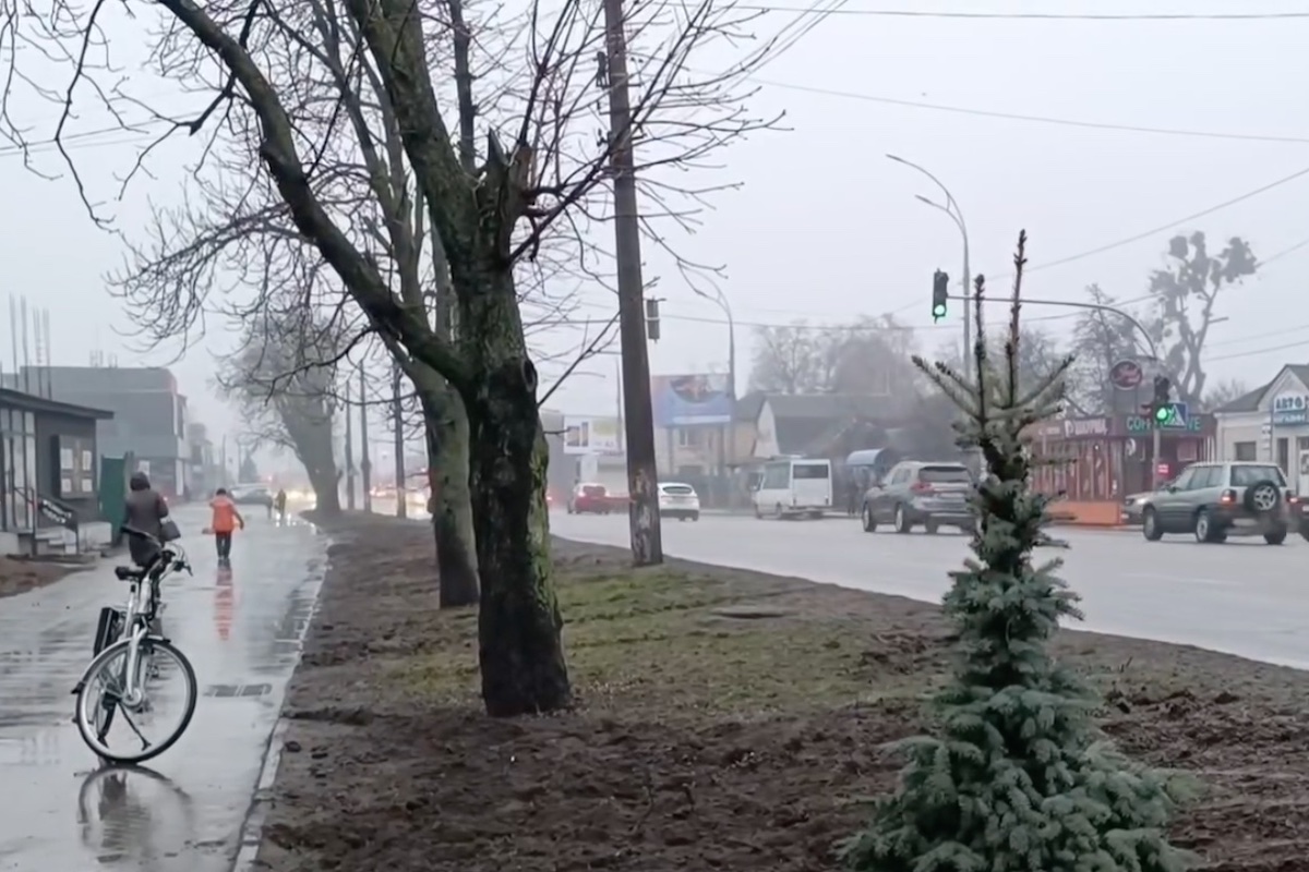 На місці знесених каштанів хтось встиг висадити ялинку.