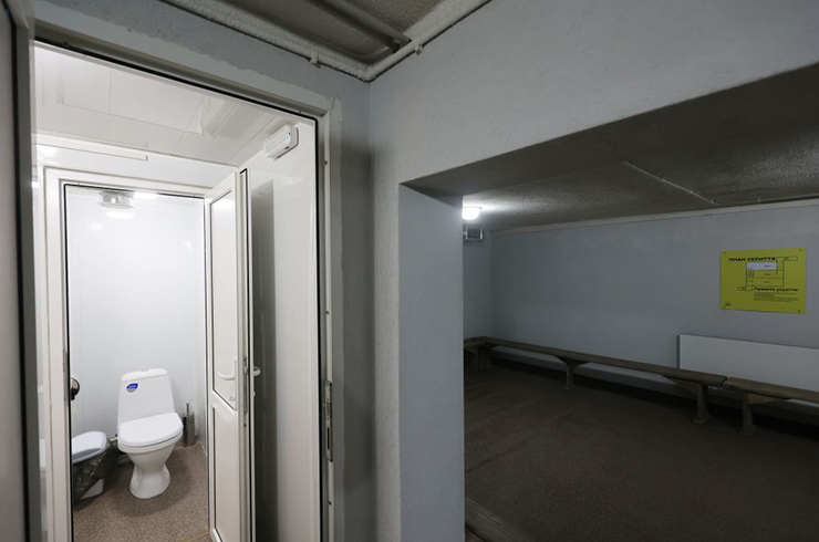 Стіни сховища відновили, залили бетонну пілдогу, постелили лінолеумне покриття та встановили чотири санвузли. Також відремонтували входи та виходи, встановили систему автоматичного відкриття дверей під час тривоги та датчики диму для безпечної евакуації людей у випадку пожежі. Додатково в укритті зробили запаси води в спеціальних баках.