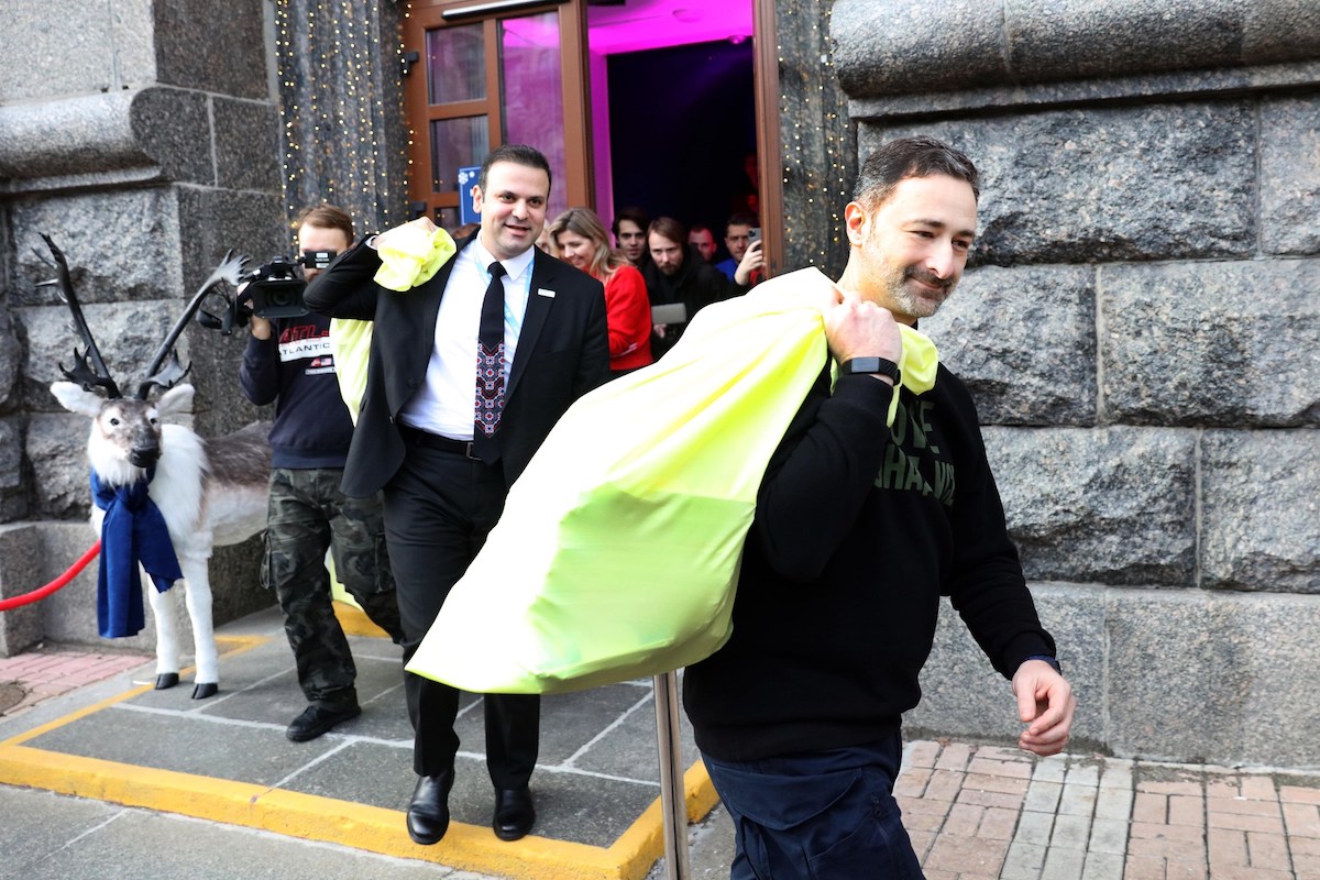 Гендиректор Укрпошти Ігор Смілянський вручну доставляє посилку. Фото: facebook.com/ukrposhta