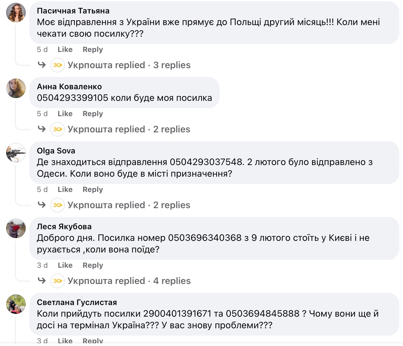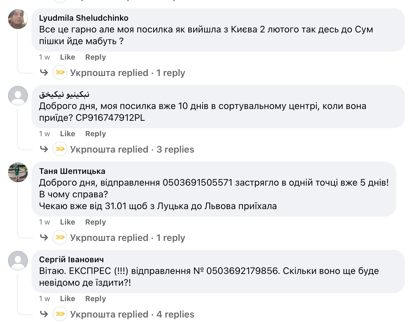 Такі труднощі в Укрпошти виникають не вперше. Торік під час чергової масової затримки посилок працівники лише відповідали, що «у зв’язку зі збільшенням кількості відправлень наразі присутні тимчасові затримки в обробці відправлень на сортувальних центрах».