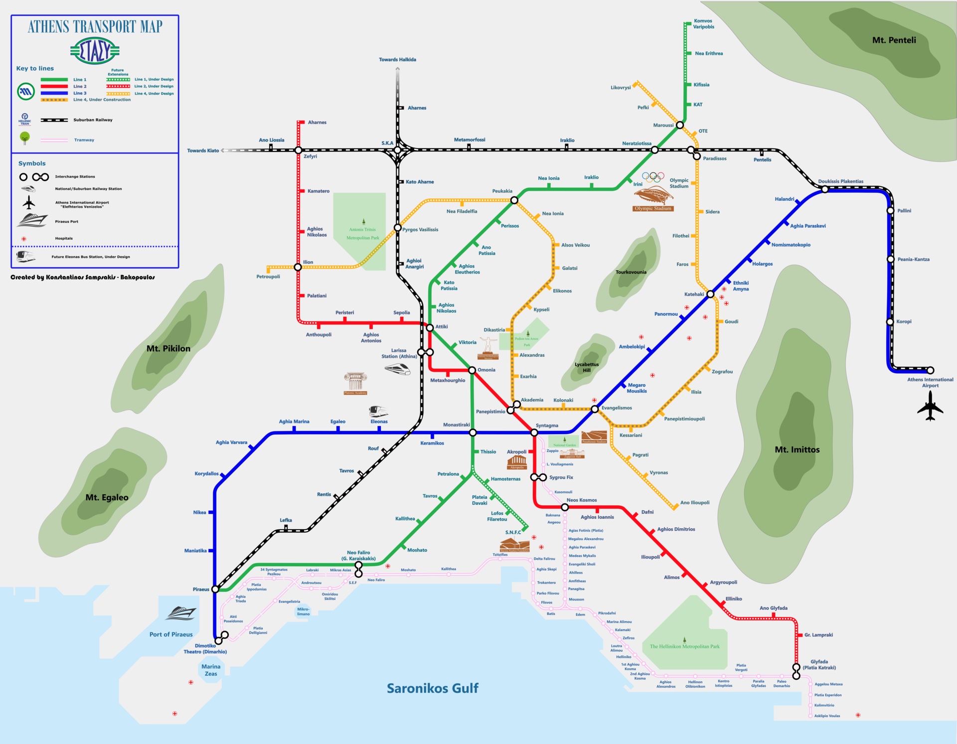 Зараз афінське метро складається з трьох ліній і 66 станцій. Воно, зокрема, сполучає місто з аеропортом і Пірейським портом.