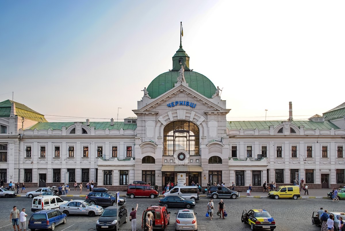 Залізничний вокзал у Чернівцях збудували 1909 року за проєктом Отто Коломана Вагнера. Фронтон будівлі у стилі модерн прикрашає статуя богині Іриди.