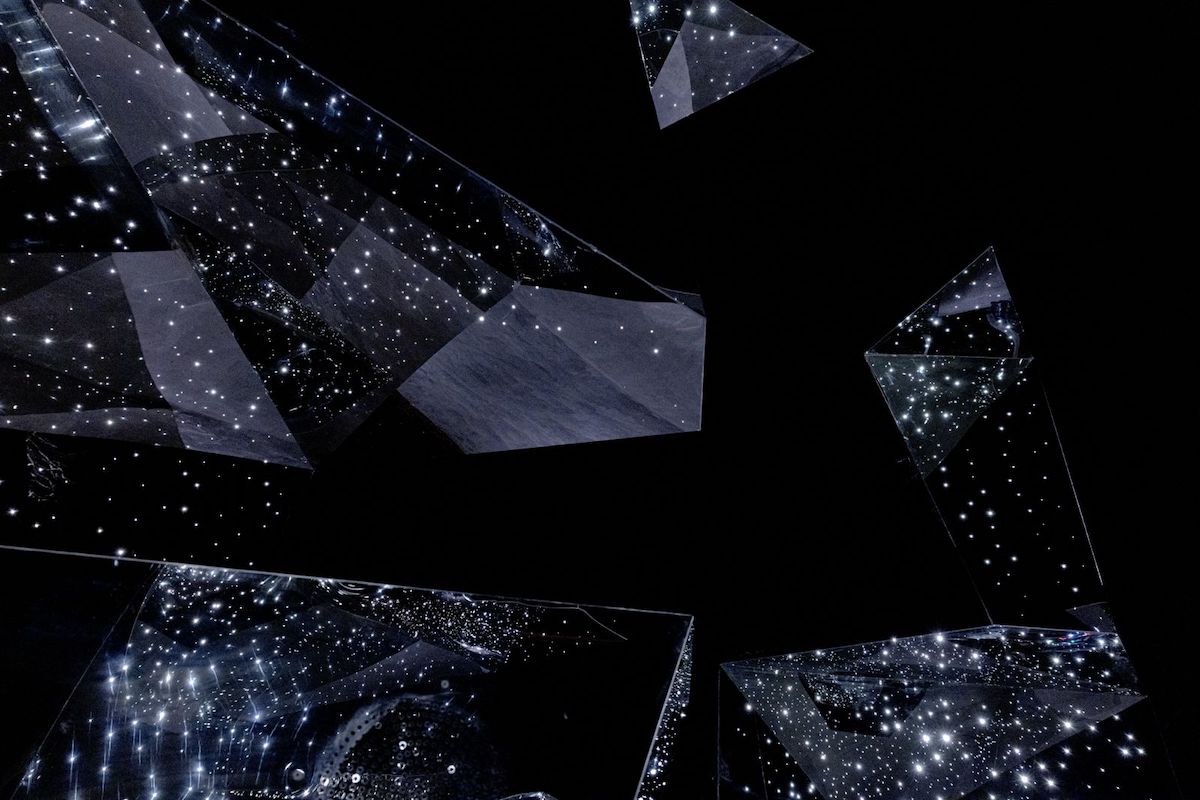 Ламана дзеркальна поверхня з оптоволокном створює світлові бліки навіть вдень, а вночі запалюються тисячі світлових елементів. Світлові вогні скупчуються до центру.