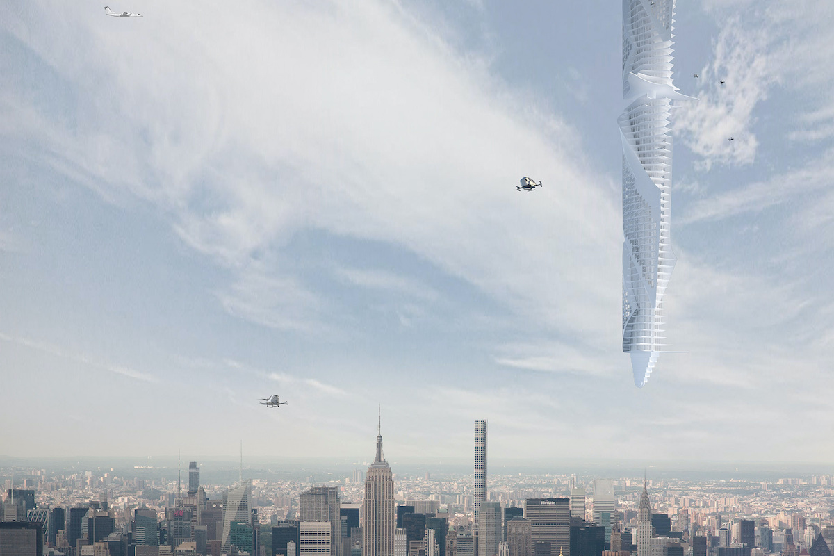 Ймовірно, найнезвичніший і найіронічніший архітектурний концепт має у своєму портфоліо нью-йоркська компанія Clouds Architecture Office. Це хмарочос, який звисає з астероїда на земній орбіті.