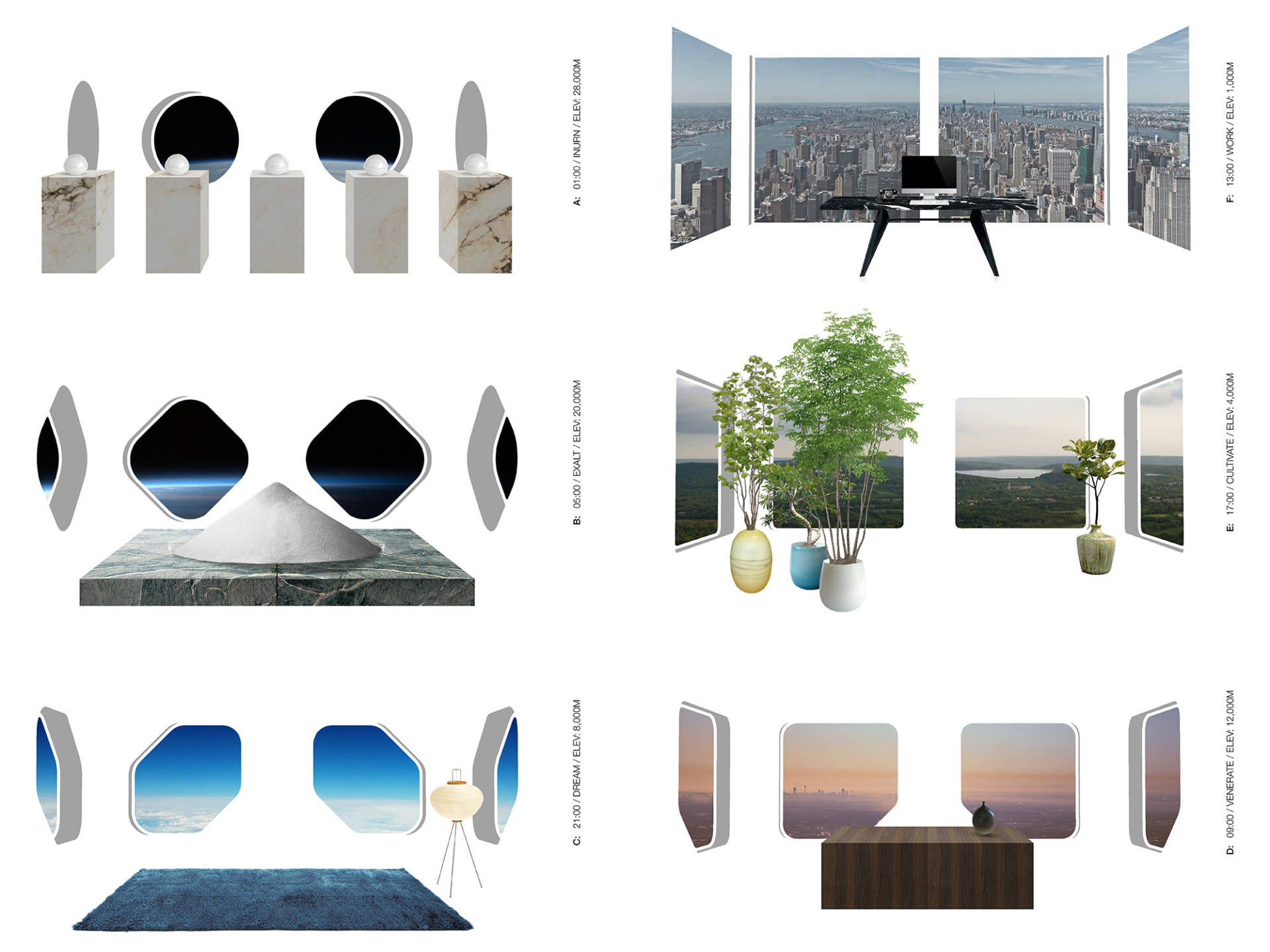 На найнижчих рівнях буде розташовано комерційні площі та офіси, наступні дві третини висоти займатиме житло. Розмір і форма вікон змінюється з висотою, щоб врахувати перепади тиску і температури.