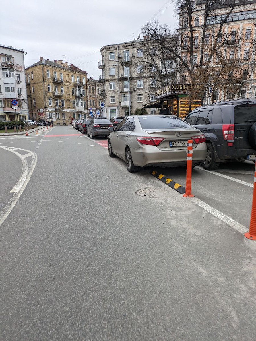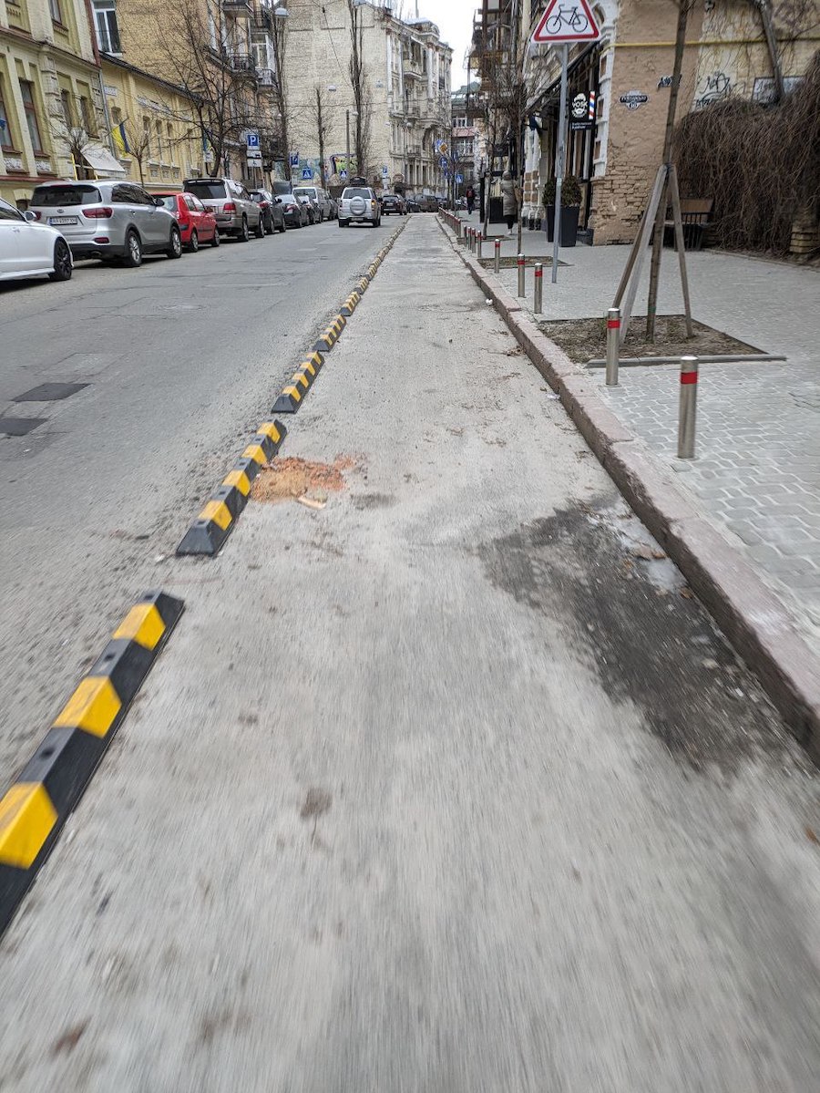 Велосмугу на Рейтарській додатково відмежували стовпчиками: гумовий борт не допоміг