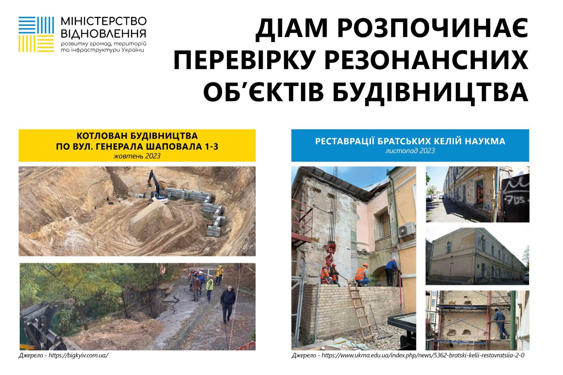 Державна інспекція архітектури та містобудування України (ДІАМ) заявила про початок інспектування будівництв, зупинити які неодноразово вимагали кияни. Перевірки проводитимуться за дорученням Міністра інфраструктури, який повідомив: