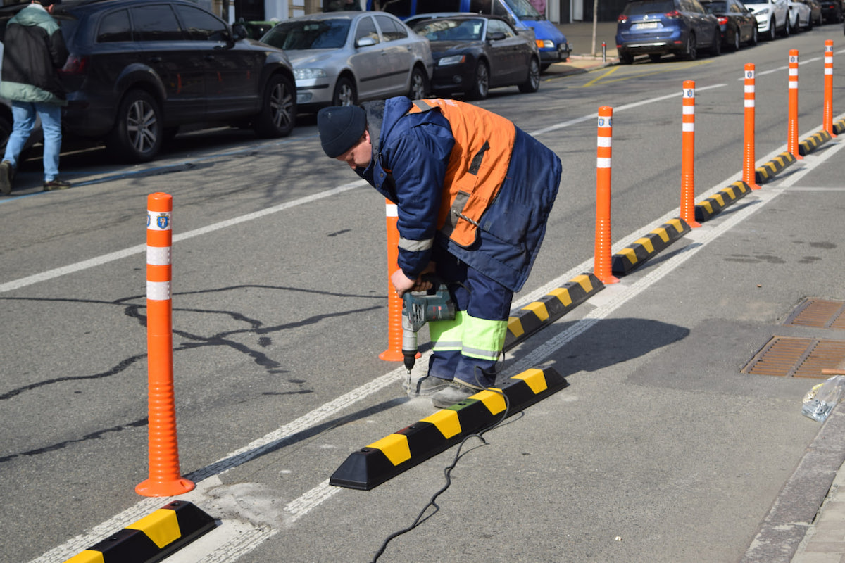 На вулиці Лисенка в Києві велосмугу відокремили стовпчиками та бортами