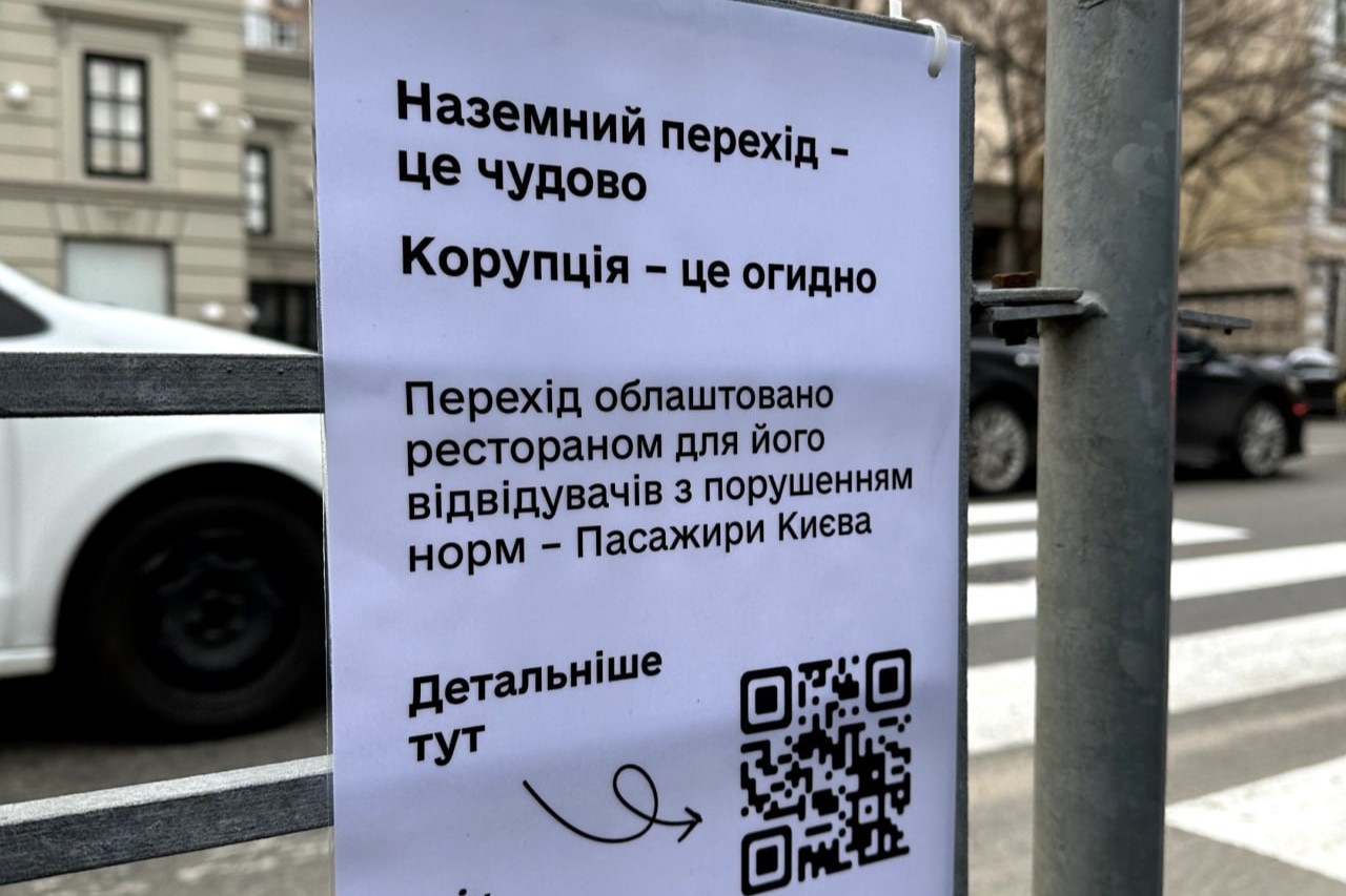 В Києві облаштували наземний перехід з порушеннями. Активісти заявляють про «замовлення» від елітного ресторану