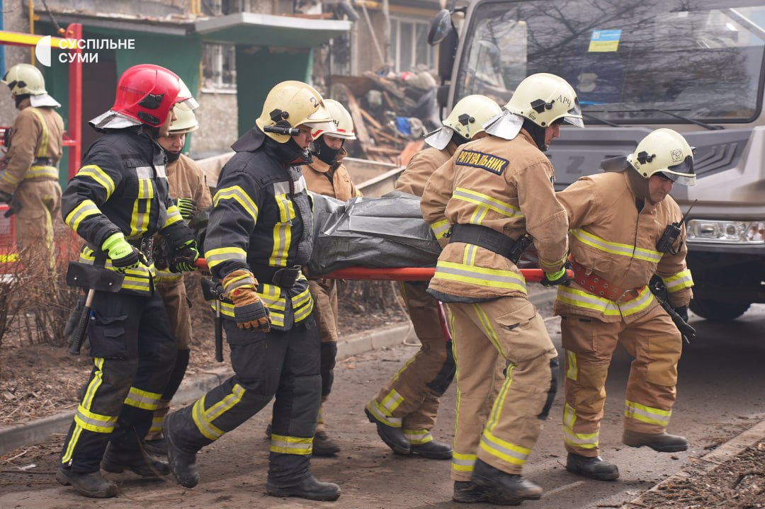 За інформацією Сумської міської військової адміністрації, на місці влучання з ночі працюють рятувальні служби. Пожежу вдалося загасити. У п’ятиповерхівці зруйновано два під’їзди та 15 квартир. Попередньо з-під завалів врятували вже 10 осіб, троє з яких були госпіталізовані.