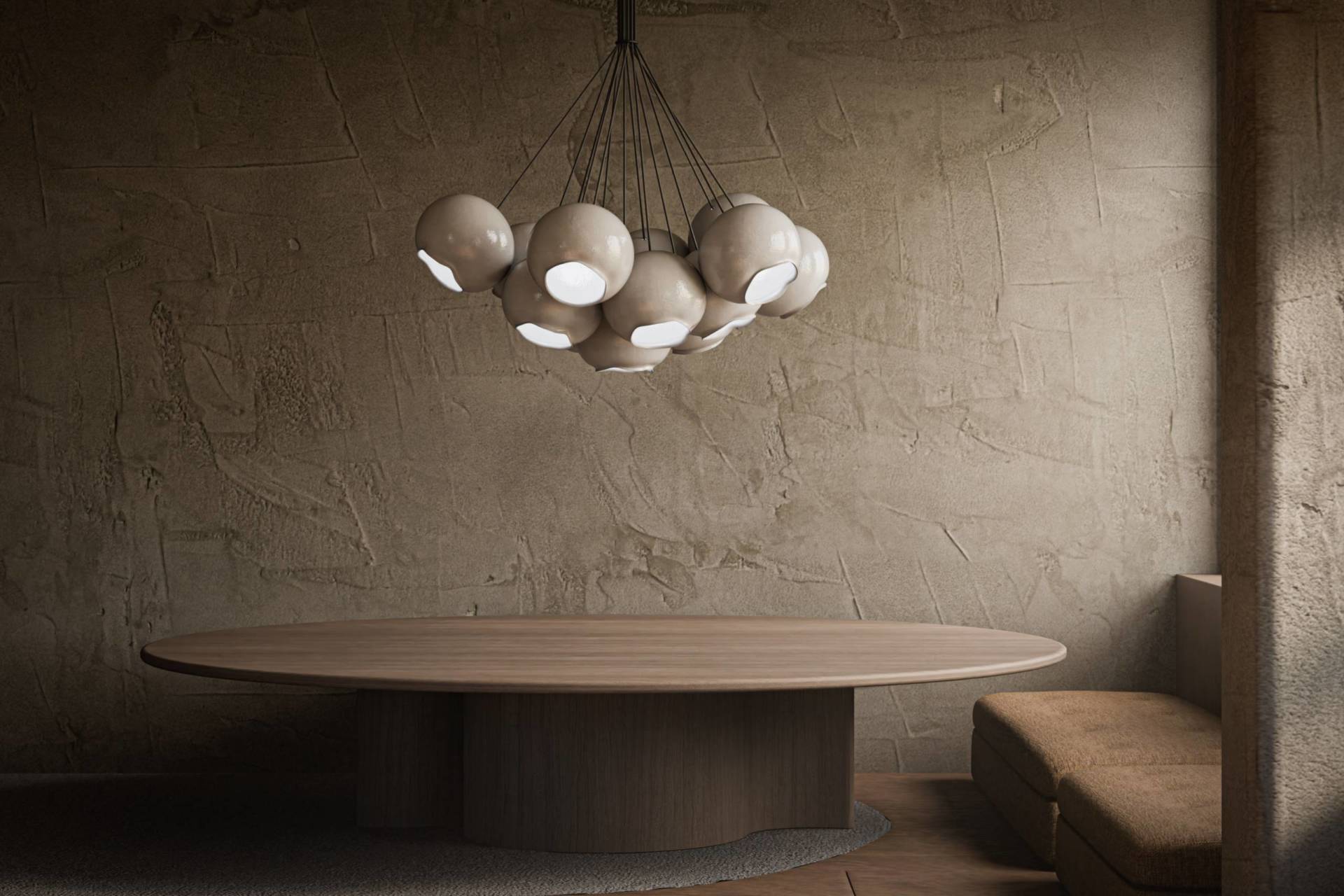 KALYNA – світильник, що є даниною українській естетиці. Понад десять окремих керамічних сяючих сфер збираються у смачне гроно, яке випромінює світло в усі боки, створюючи вибагливий світловий дизайн. Калина є одним з символів України. Вражаюча естетика цієї лампи не залишає байдужих.