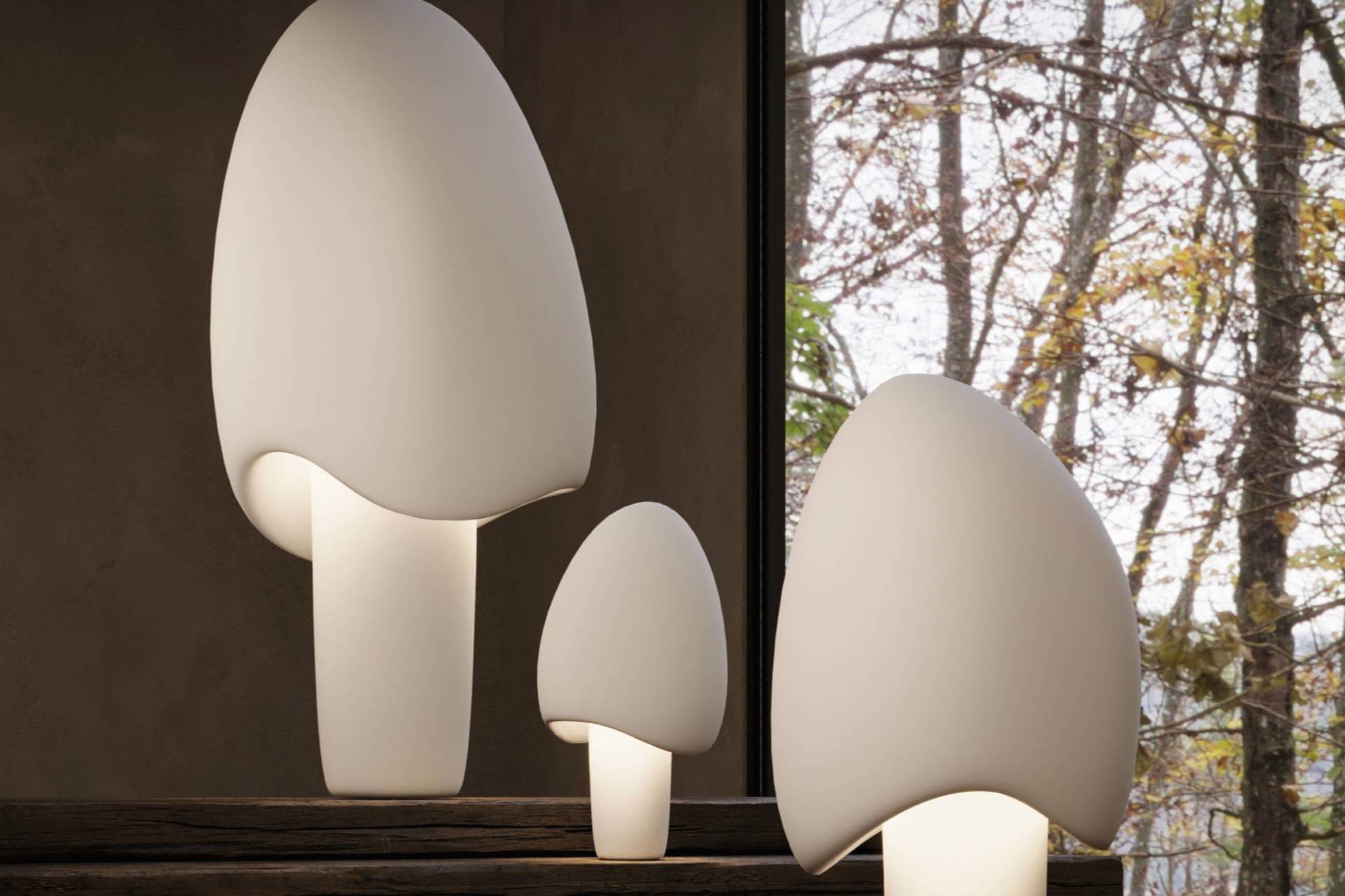 MUSHROOM LAMP – один з найдивовижніших дизайнерських світильників у світі. Його натуроморфна форма та химерний світловий дизайн перенесуть вас на чарівну галявину, місце мерехтливого радісного спокою. Ці «грибочки» можуть бути різних форм, розмірів та матеріалів. У якості нічників, настільних та підлогових ламп.