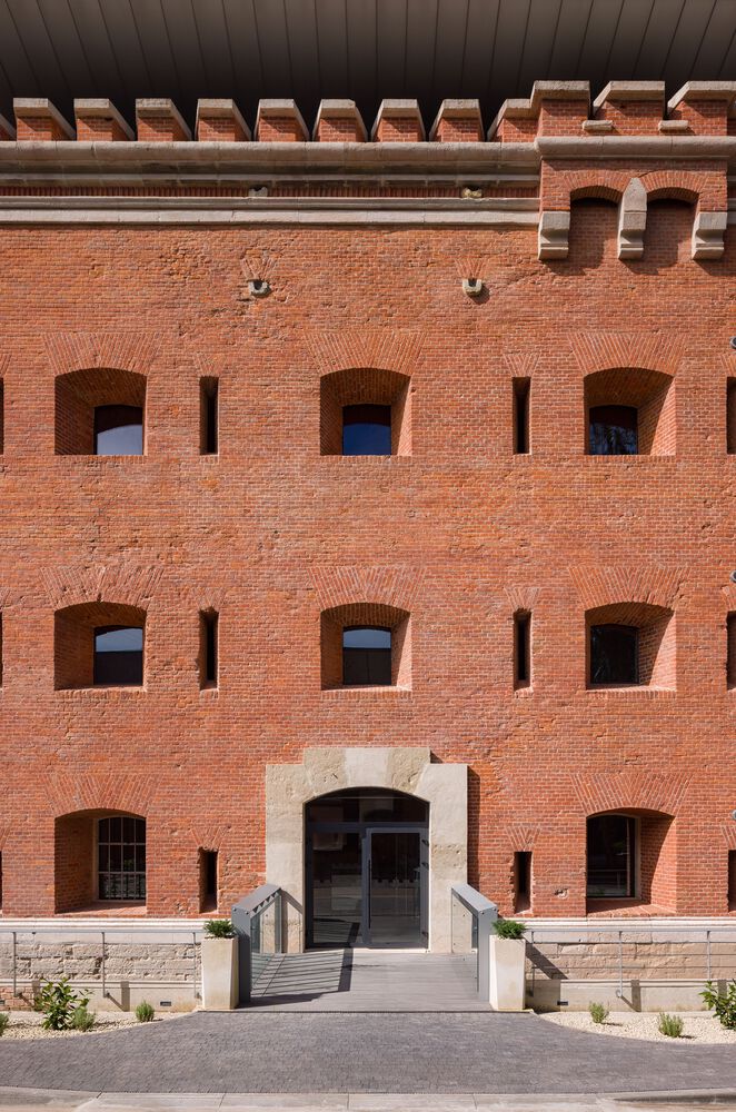 Дах дещо піднімається над оригінальною будівлею, щоб можна було легко розрізнити історичні елементи та нові.