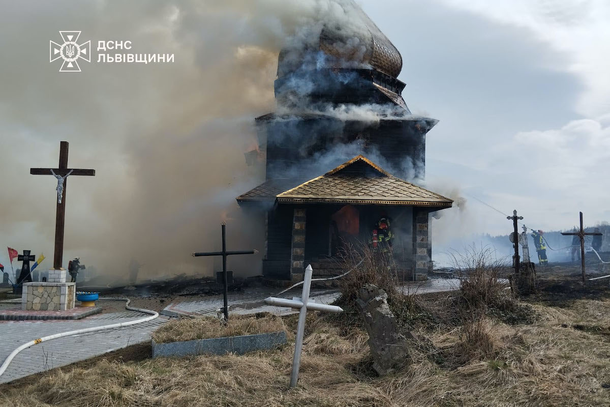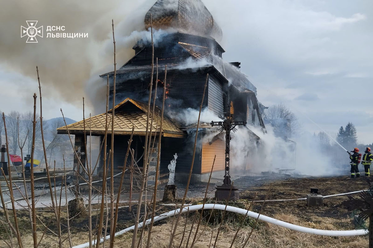 Вранці 23 березня в селі Сможе Львівської області згоріла дерев’яна церква, повідомляє ДСНС.