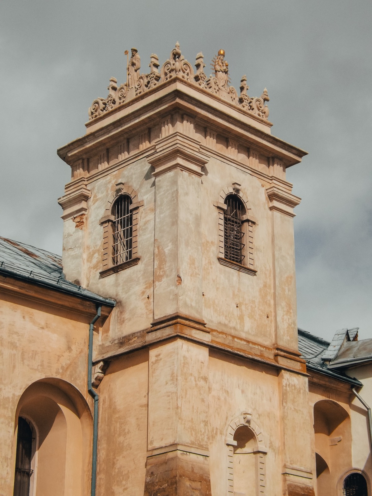 На вежі костелу — один з найдавніших ренесансних аттиків у Львові. З усіх боків він має фігури та елементи декору, які обрамляє орнамент голландського маньєризму.