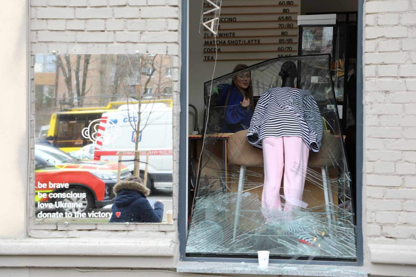 З вибитим склом і без вікна: київська кав’ярня продовжує роботу після обстрілу