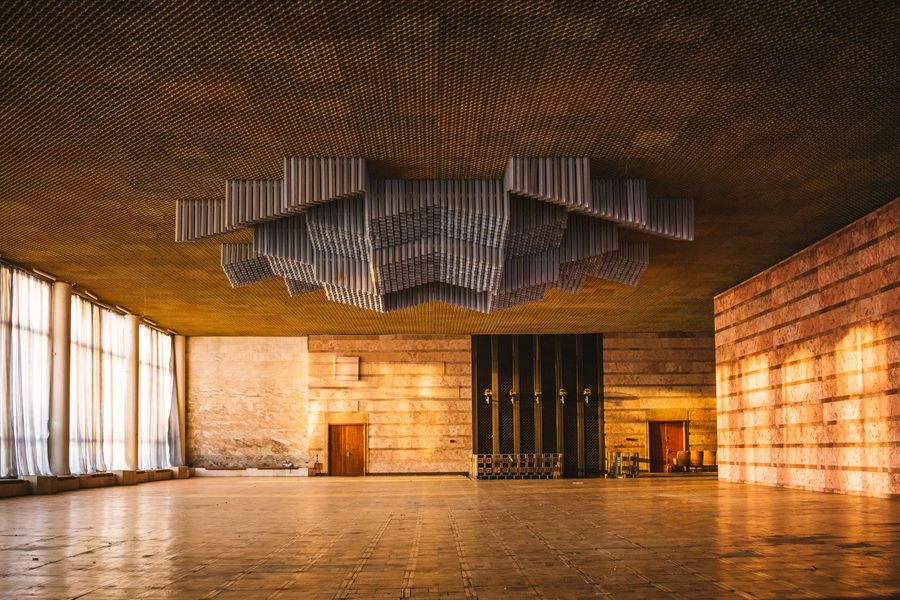 Зимою «Хмарочос» розповідав, що інтер’єри палацу були пошкоджені внаслідок пожежі. Тоді повністю вигоріла зала, а вестибюль залило водою. Також був закопчений хол із великим дерев’яним панно, яке зокрема складається з тисяч маленьких приклеєних пікселів і не має аналогів у країні. Врешті активістам вдалося домовитися про розміщення декоративної роботи на ВДНГ.