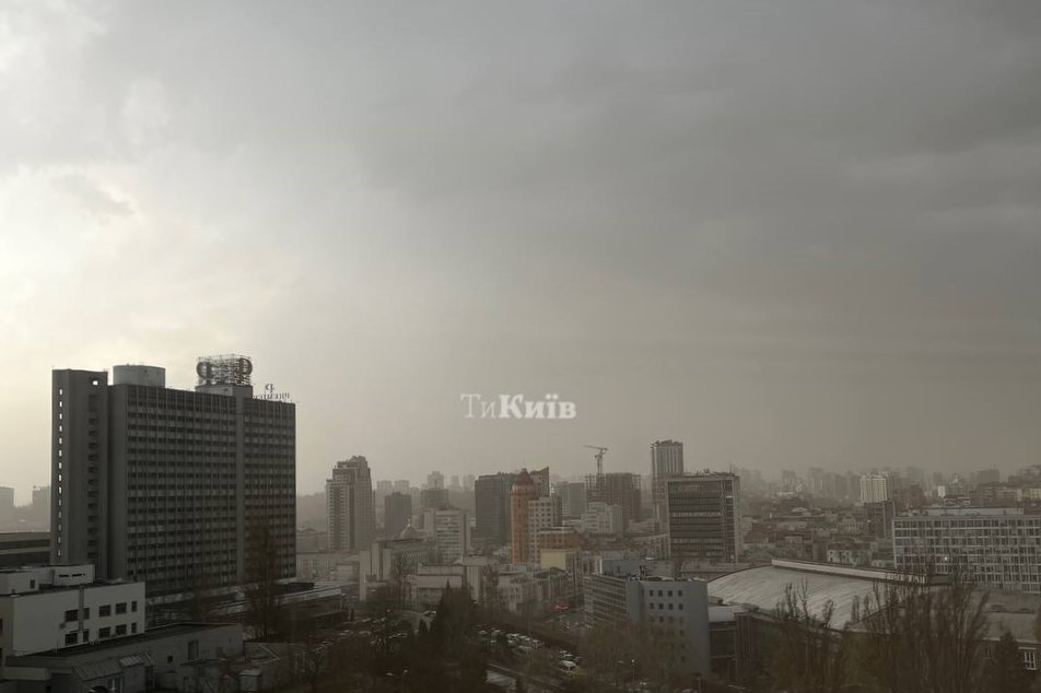 Укргідрометцентр попередив про небезпечні метеорологічні явища на Київщині. До кінця доби другого квітня очікується гроза та град в окремих районах області. У соцмережах кияни активно публікують фото і відео як місто накрила пилова хмара.